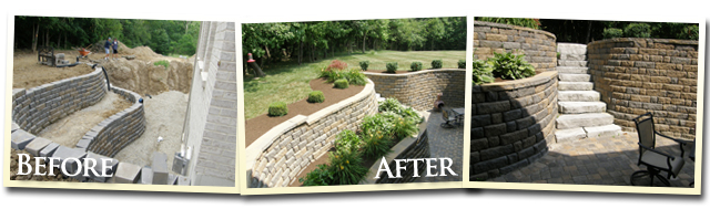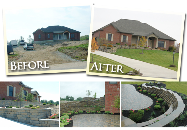 The entire outside (above) was completed by Murphy's Nursery & Landscaping. From the retaining walls and landscaping to the grass, trees/shrubs and even the culvert installation.